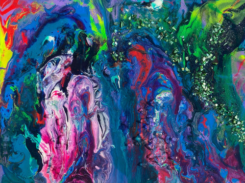 Original 16x12.5 "My Favorite Color is You" Abstract Geode Canvas Resin Art, Bright Rainbow Wall Art, Poured Resin Artwork