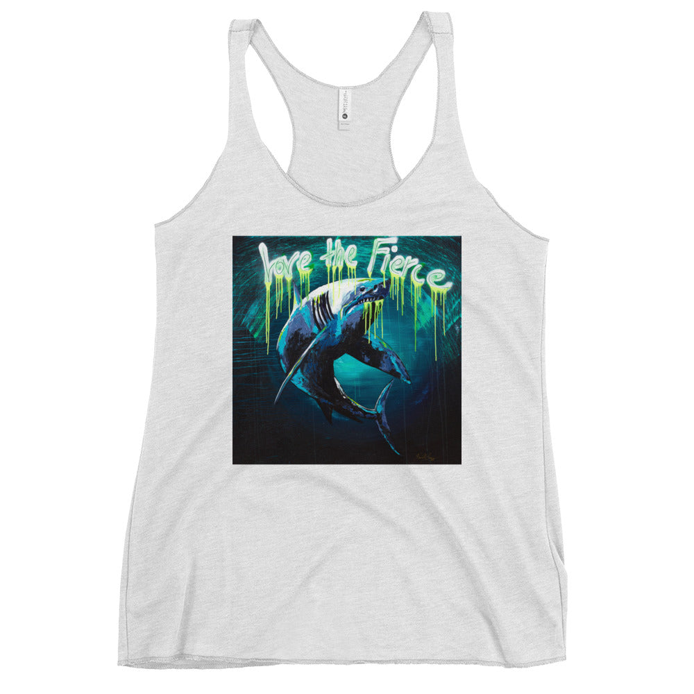 This racerback tank is soft, lightweight, and form-fitting with a flattering cut and raw edge seams for an edgy touch.