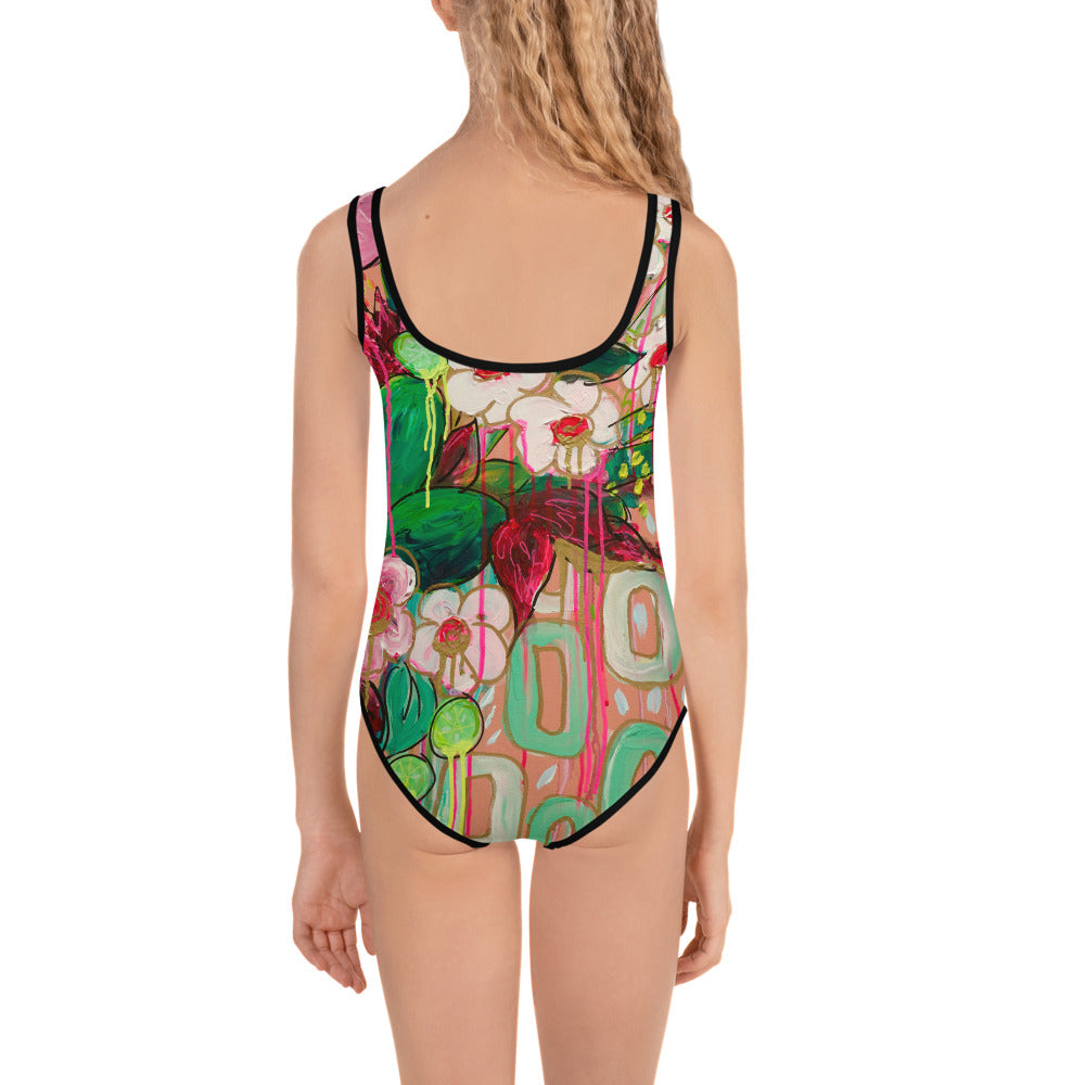 This girls' swimsuit has it all - comfortable fit, elastic fabric, and a deep-colored print that won't fade in the sun and water. The double-layered front, bias binding, and 38–40 UPF ensure that the kids can be their active selves, and the parents don't have to worry about any wardrobe malfunctions.